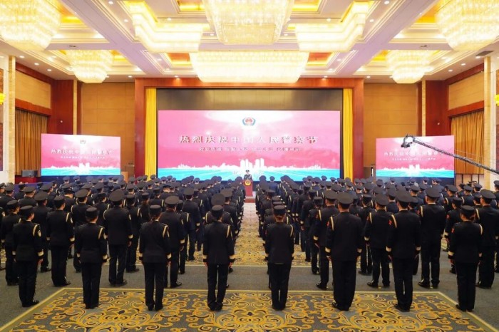 庆祝仪式在庄严的国歌声中拉开序幕,全体人民警察警容严整、庄严肃立,面向警旗敬礼、集体宣誓,重温入警誓词。全省监狱、戒毒系统优秀人民警察代表韩高林、刘慧作了发言,谢又生为新入警和晋升警衔人民警察代表颁授警衔,为从业从警30年人民警察代表颁发荣誉杯。