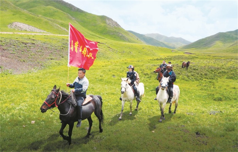 夏河县司法局创新成立“马背上的矫正小队”(资料图)。