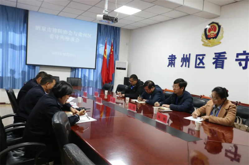 座谈会上,王宝明所长结合实地参观情况,详细介绍了肃州区看守所的整体运行现状、律师会见工作开展情况,以及近年来为提升会见服务效率所采取的系列举措。郝成代表酒泉市律协,对看守所长期以来保障律师执业权利、重视律师工作的做法表示衷心感谢,并明确市律协将进一步加强律师队伍的职业道德建设与执业纪律监督,引导律师依法依规开展会见工作,共同维护监管秩序。随后,双方围绕看守所服务管理优化、律师会见流程简化、紧急会见需求响应等具体问题深入交流,就律师会见预约通道便捷性、会见过程沟通衔接等细节达成共识,明确将进一步优化预约流程、畅通联系机制,为律师依法执业提供更高效保障。