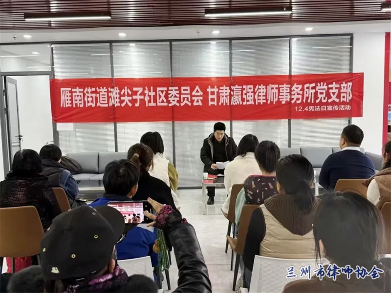在国家宪法日来临之际,为深入学习贯彻习近平法治思想,扎实推进“我为群众办实事”实践活动,甘肃瀛强律师事务所走进滩尖子社区开展宪法普法宣传活动。以党建红引领法治蓝,将专业法律知识送到群众身边,用实际行动守护老年人合法权益,让宪法精神在基层落地生根。