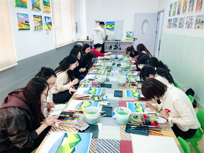 活动现场氛围轻松愉悦,主办方特别邀请了专业美术老师担任指导,从水粉画的颜料特性、基础构图、色彩搭配等基础理论知识讲起,通过现场分步示范,耐心细致地讲解了握笔技巧、调色方法、晕染技巧等绘画要领。在老师的引导下,大家纷纷拿起画笔,从最初小心翼翼的尝试,到逐步放开思路自由创作,将法律人特有的细致与艺术创作的创意巧妙融合。经过两个多小时的精心创作,每位参会律师都制作出了自己独一无二的作品,活动尾声大家围绕作品展开了热烈交流,分享创作思路与活动感悟,现场欢声笑语不断。